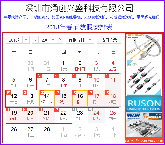 放假期間,為了方便您在節日期間獲得我們的客戶服務,您可以通過電子郵箱:sales@szservos.com與相關服務人員取得聯系。