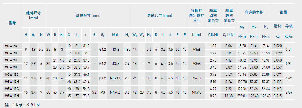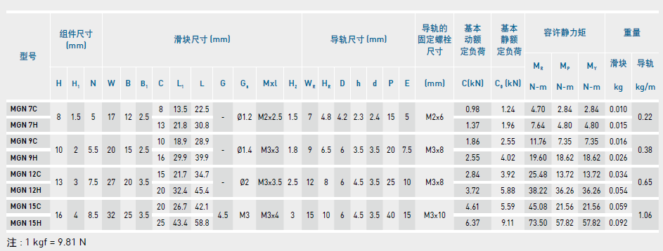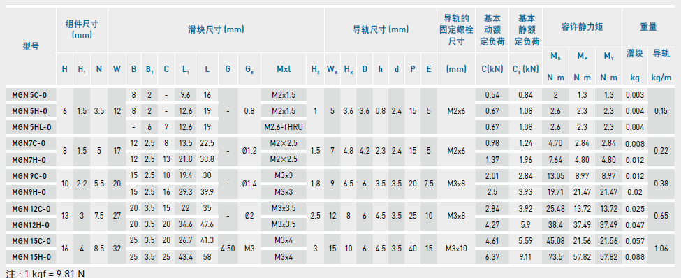 微型直線導(dǎo)軌尺寸表