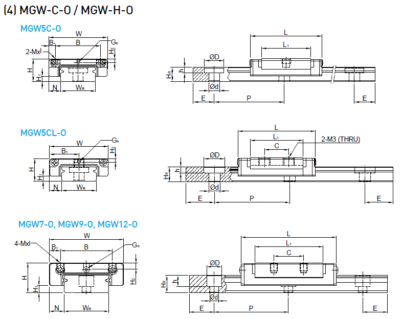而MGW(寬幅)系列則是加寬滑軌之設(shè)計(jì)大幅提升力矩負(fù)荷能力,可單軸使用。 哥德型四點(diǎn)接觸設(shè)計(jì),可承受各種方向之負(fù)荷并具有高剛性之特點(diǎn)。 滑塊裝有微小型保持鋼絲,取下滑塊鋼珠也不會(huì)脫落。